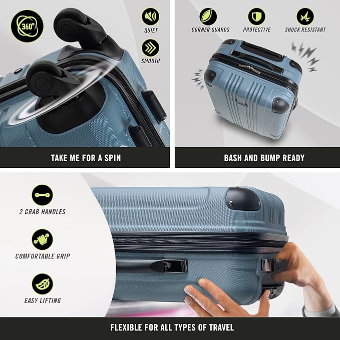 - ULTRALIGHT & DURABLE: Made with a hard shell ABS & PC material and molded corner guards for extra protection. Interior features tear-resistant polyester lining.