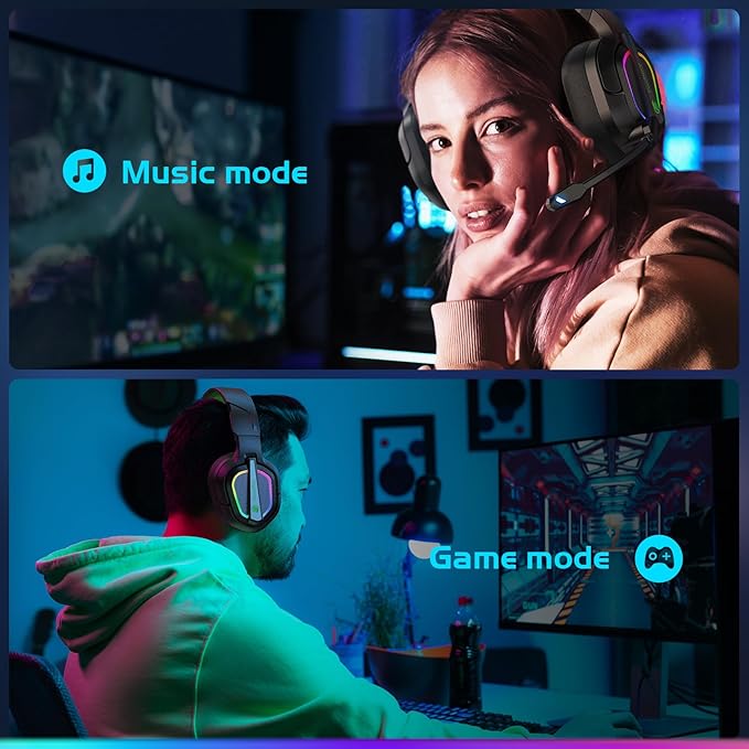 - [Cool RGB Lighting] The Fachixy Gaming Headphones is equipped with a cool RGB light strip design. The LED lighting effect can change dynamically with the game. Bring out your LED RGB fantasies with vibrant, eye-catching lights in a dim halo. Soft RGB lighting, stylish and attractive, is a cool addition in video recording and live broadcasting scenarios.