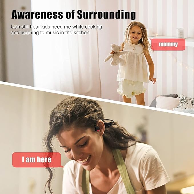 - Comfortable and Lightweight Design: Weighing only 25g, these open ear headphones provide a barely-there feeling while delivering exceptional sound quality. The flexible titanium wire frame allows for 360-degree bending, ensuring durability and a comfortable fit. The soft silicone ear pads guarantee all-day comfort, making them perfect for multitasking and keeping an ear out for your child's needs while doing household chores