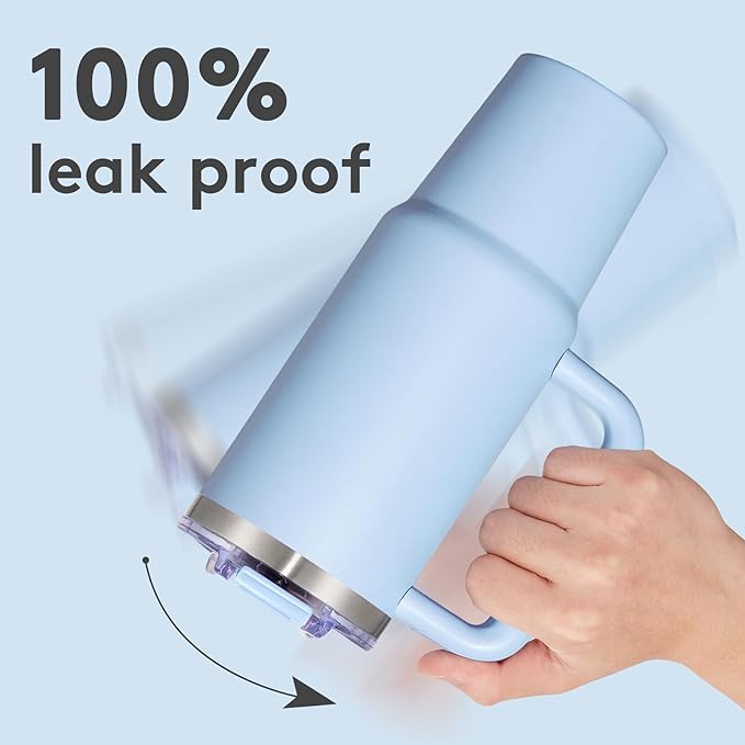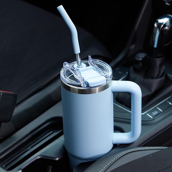 - HANDLED TUMBLER WITH STRAW is easy to sip in any way. Includes a transparent flip cover two drinking methods, a silicone design at the straw mouth to prevent beverage overflow. We also come with two different straws, one is a plastic straw with the same color as the cup, the other is a stainless steel straw with a silicone cover