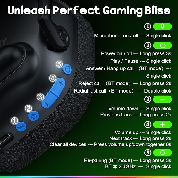 Wireless Gaming Headset 2.4GHz & Bluetooth 5.4 Gaming Headphones with ENC Mic, Ultra-Low Latency, Stereo Sound, Wireless Headsets for Sega Game Gear Accessories, PS5, PS4, Switch, PC, Mac