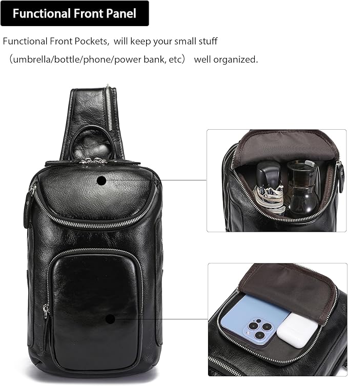 - The leather sling bag is an excellent travel companion, keeping your 10.5" iPad and essentials secure, the multiple compartments and pockets keep your smail stuff well organized, ensuring easy access to your belongings on the go.