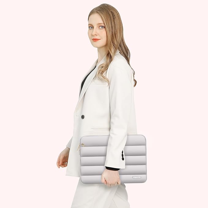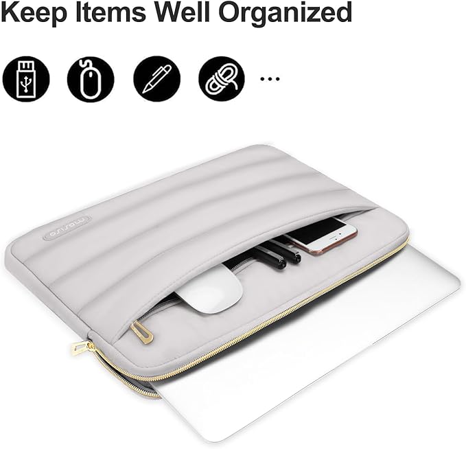 - Made with soft touch puffy polyester material, features a polyester foam padding layer and fluffy fleece fabric lining. Protect your laptop from bump, shock and accidental scratches.