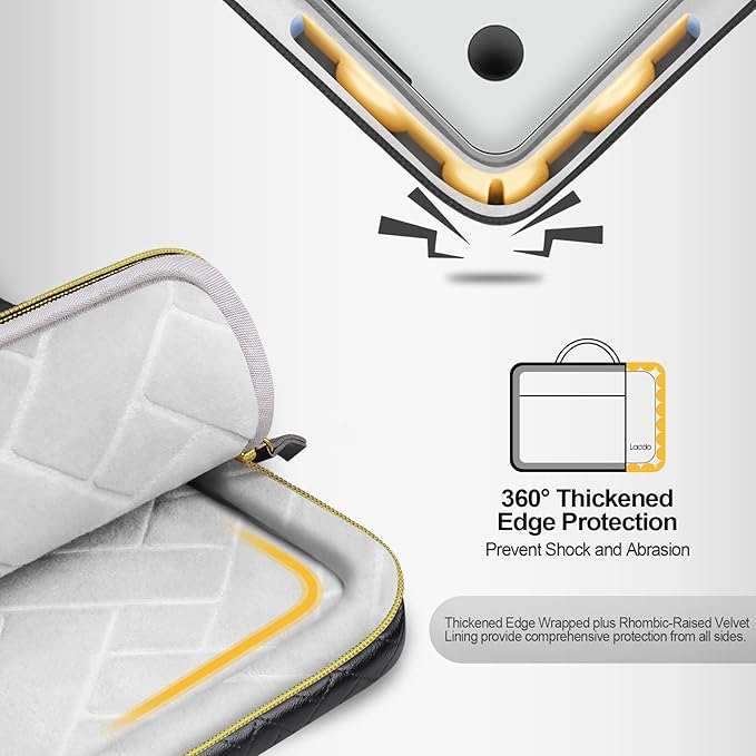 - Anti-static Rhombic-Raised Pattern Fluffy Lining: Ultra-soft velvet lining of the laptop sleeve case bag delivers antistatic property to prevent the creation of static electricity, minimize the risk of static-related damage, enhances your device longevity. The cushy velvet layer is also designed with Rhombic-Raised pattern which is anti-scratch and shock absorption guarding against scratches and damages, enhance laptop storage comfort, offer soft and sturdy protection.