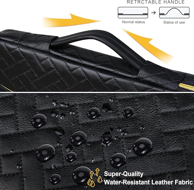 - Conservation of Resources: Utilizing reborn harmless fabric in the construction of the laptop bag underscores a commitment to social sustainability. This laptop sleeve helps create a green lifecycle and reduces overall waste, contribute significantly to saving the Earth. We select fancy leather fabric which water-repellent, scratch-resistant, hard-wearing and durable, offering unparalleled protection for your valuable laptop and everyday life.