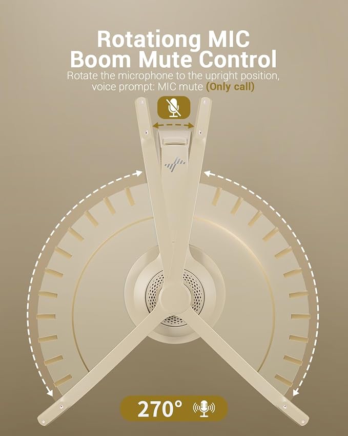 Wireless Headset with AI Noise Cancelling Microphone Bluetooth Headset - Bluetooth V5.2 Headphones with USB Dongle & Mic Mute for Computer/Laptop/PC/iPhone/Android/Cell Phones/Zoom-Apricot