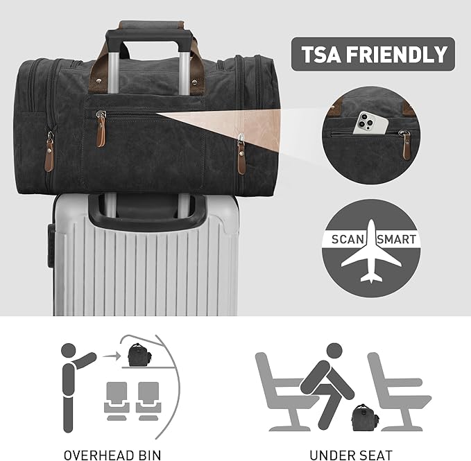 Wildroad 60L Travel Duffel Bag, Expandable Waxed Canvas Genuine Leather Duffle Bag Upgraded Overnight Weekender Bag Carry on Bag (Vintage Black, X Large-60L)