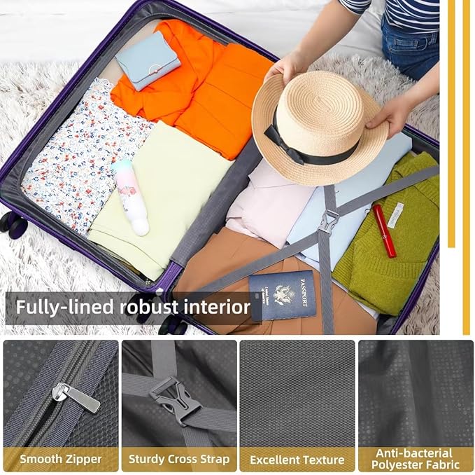 - Sturdy PP Material: Crafted from robust Polypropylene (PP) material, these suitcases are exceptionally resistant, providing resistance to abrasion and scratches for long-lasting reliability