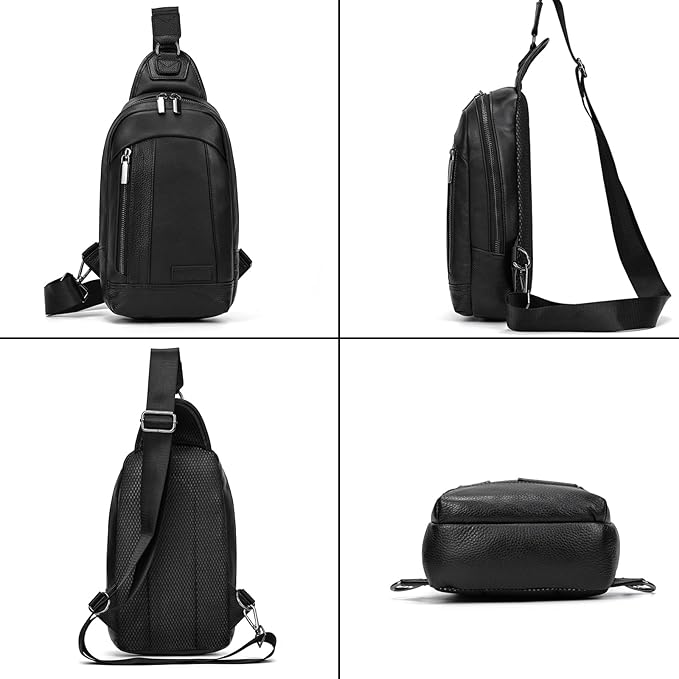 - GENUINE LEATHER BAG MATERIAL: It is a GENUINE LEATHER bag with waterproof ability. The inner is well lined with soft material and breathable soft cushion belt.Shoulder strap is adjustable to meet different requirements.