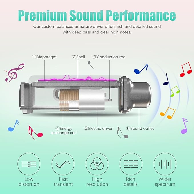 - Pleasant Vivid Sound -- These earbuds boast a hybrid design with a single custom-tuned balanced armature driver for each earbud, delivering powerful and vivid stereo sound with deep bass. The aluminum alloy cavity ensures stable audio output without interference from external signals.