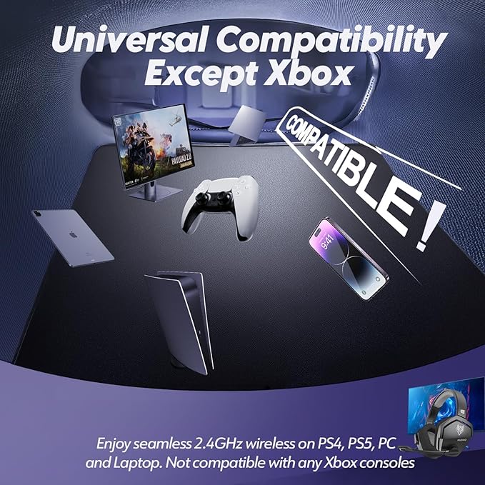 - Effortless Wireless Gameplay - Transition from tangled cables to smooth wireless gaming. Leveraging a 2.4GHz connection through its USB dongle, this headset ensures consistent gameplay for PCs and many consoles. Note: Some consoles may not support this wireless feature.
