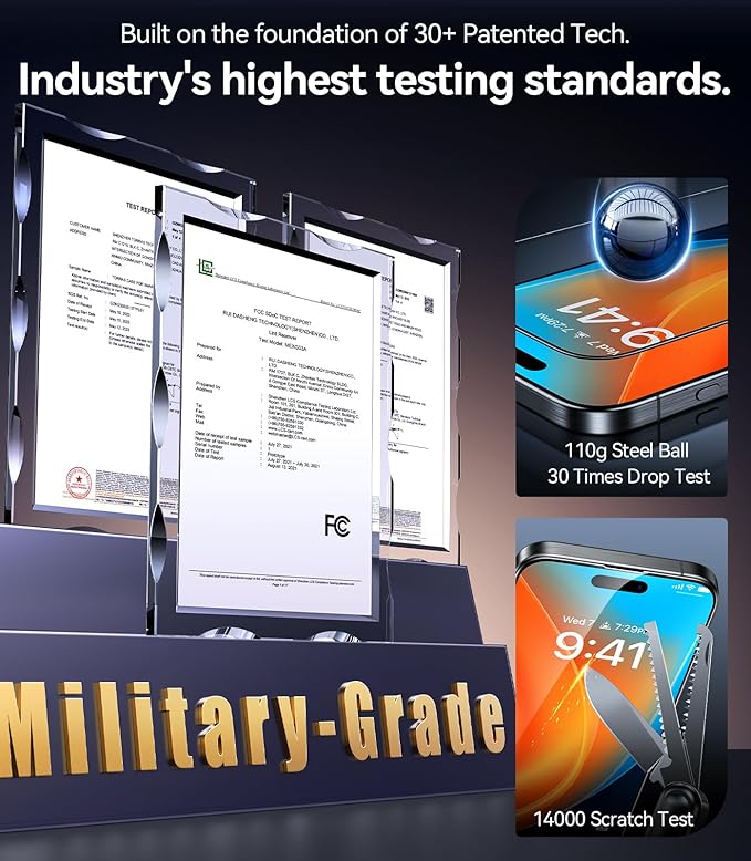 - 【Fortress-Level Security:Top Aerospace Grade Tempered Glass】Compatible with iPhone 16 Plus.Made with military-grade impact-resistant glass and advanced triple ion exchange technology, this screen protector can withstand up to 220 pounds of force. It has a hardness rating of over 9H and has passed over 1,000 scratch tests with keys and knives, ensuring 99% effective screen protection. It keeps your screen safe from cracks and damage due to drops and collisions, saving you from costly repairs.