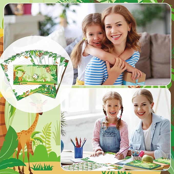 TaoBary 160 Packs Stationery Paper Set (50 Double Sided Stationery Writing Papers 50 Matching Envelopes) 60 Round Dot Sticker, 10 Design(Safari Animal,8.5 x 11 Inch)