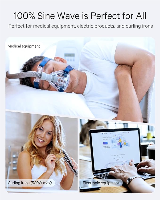 - ☑️ Medical equipment like CPAP, if you use it to help you sleep, you'll be better off with a pure sine wave converter. Some CPAP warn that it may be damaged by a modified sine wave converter, and others warn that CPAP will work, but the humidifier unit may be damaged!