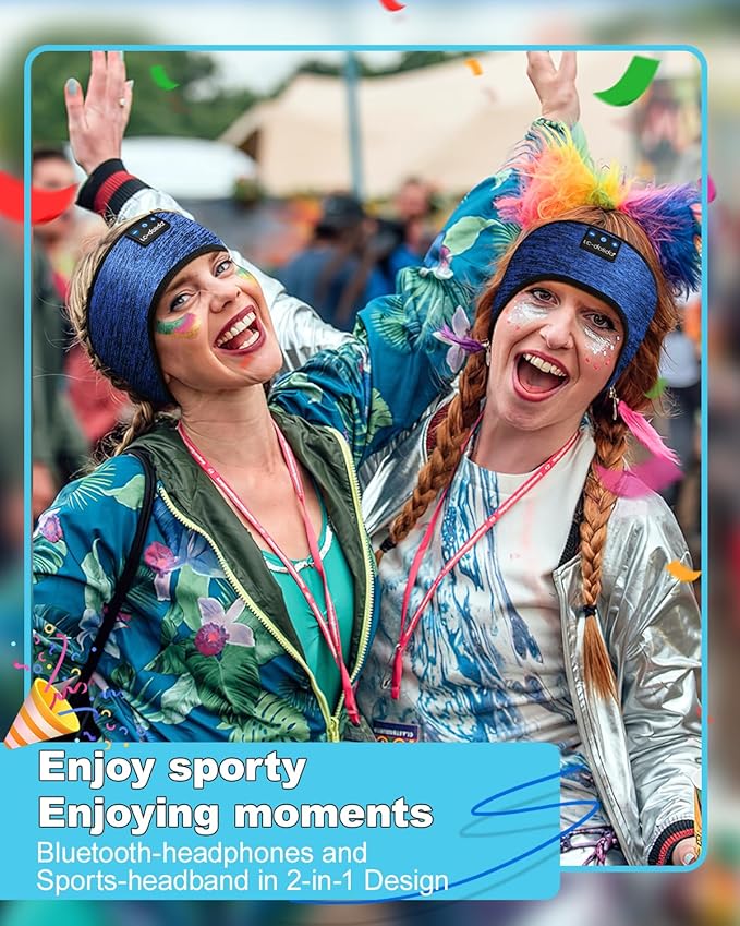- 【Comfortable & No Pressure】Bluetooth headband headphones is not only cool and soft but also surprisingly comfortable. High elasticity headband is made of 87% nylon and 13% spandex. They're very elastic. Breathable mesh lining, extremely stretchable, fit most head size, what is more, it's incredibly soft and hypoallergenic.