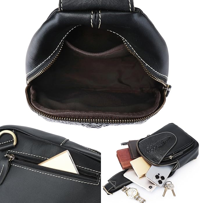 Genuine Leather Sling Bag for Men Women Backpack Chest Shoulder Satchel Crossbody Bags Casual Outdoor Daypack