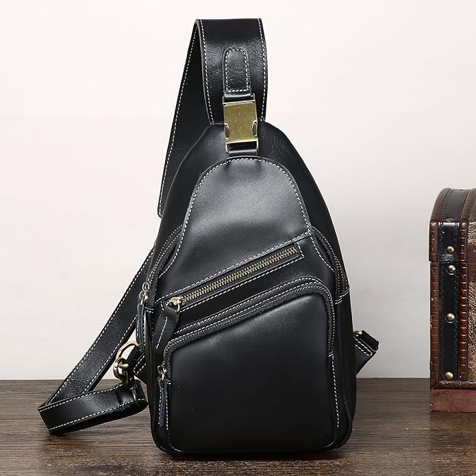 Genuine Leather Sling Bag for Men Women Backpack Chest Shoulder Satchel Crossbody Bags Casual Outdoor Daypack