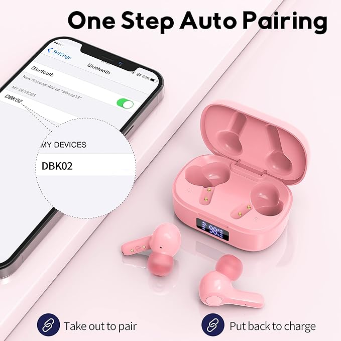 - 【Bluetooth 5.3 & One-Step Pairing】Featuring the most advanced Bluetooth 5.3 technology, MOZOTER Wireless Earbuds support HSP HFP A2DP AVRCP, which provides stable transmission speed and instant pairing without interruptions. These loud sound wireless earbuds will automatically turn on and enter pairing status when you open the charging case's lid, and you can pair the earbuds in Bluetooth settings of your phone.