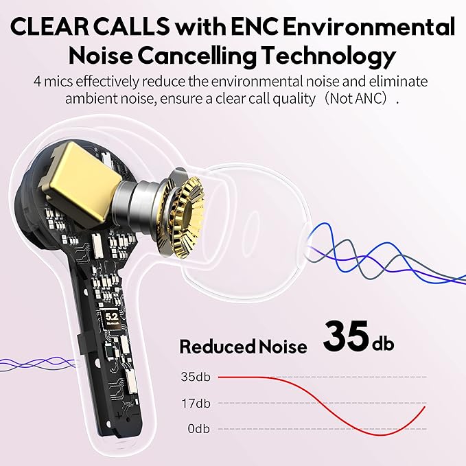 MOZOTER Bluetooth 5.3 Wireless Earbuds,Deep Bass Loud Sound Clear Call Noise Cancelling with 4 Microphones in-Ear Headphones with Wireless Charging Case Compatible for iPhone Android,Work -Pink01
