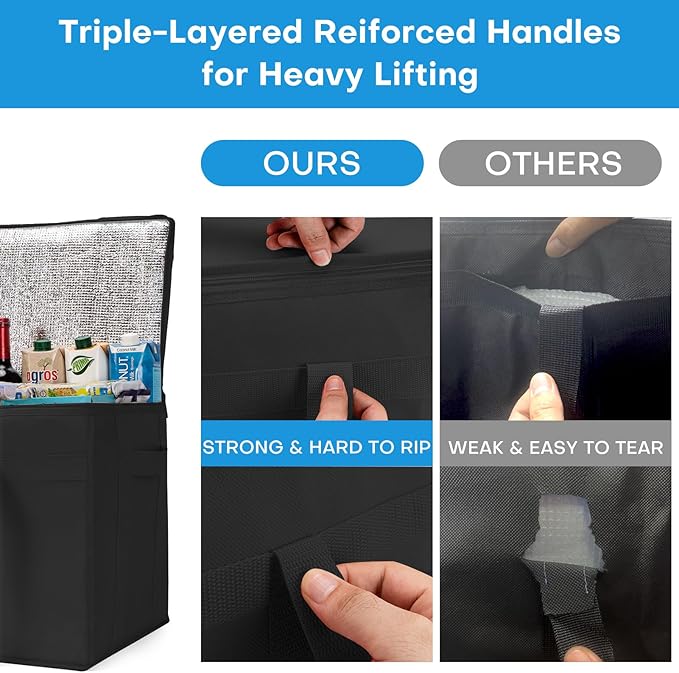 - 💪Insulated and Foldable: It is designed with three layers of insulating fabric to keep your food warm or cool and remain fresh. It is perfect for frozen foods, produce, or even hot food. Insulated cooler bag can be a substitute for your traditional cooler. It is collapsible and foldable for easy storage and future use.