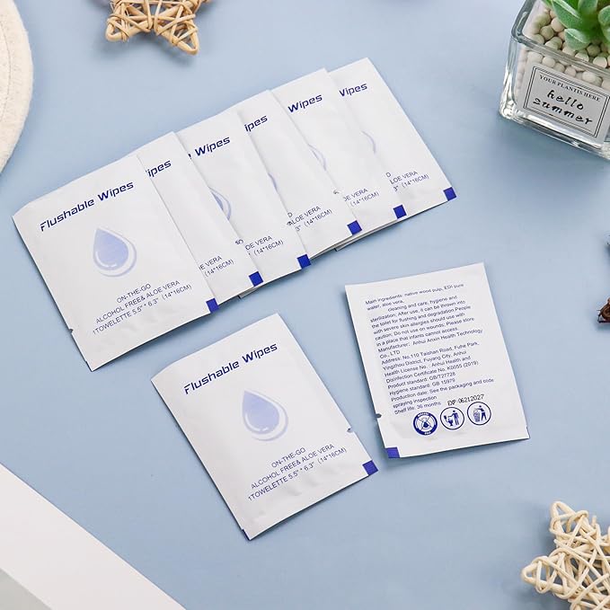 - Healthy ingredients: travel size wipes flushable are made from natural wood pulp, non-woven fabric, and natural aloe vera extract with a non irritating formula. Aloe vera is rich in moisture and helps moisturize the skin. Soothing, comfortable, and moisturizing for the skin, especially sensitive skin. A fragrance free, odorless, and individual flushable designed specifically for men's and women's wet wipes.