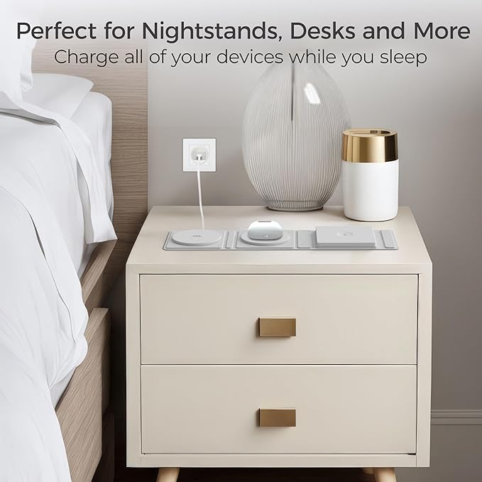 - Stylish & Minimalist Design: With its modern aesthetic and premium silicone finish, this charger blends seamlessly into any setting—your desk, nightstand, or even your kitchen counter. Soft indicator lights won’t disrupt your sleep, ensuring a peaceful charging experience.