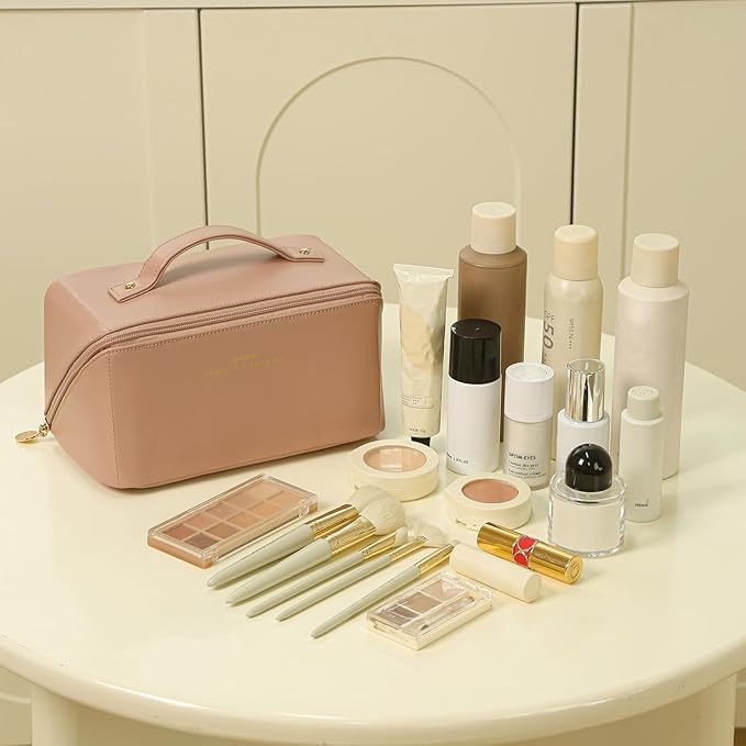 - 【Convenient compartments】: Makeup organizer With 180-degree opening design, this toiletry bag providing a clear view and easy access to all your beauty essentials. Skincare organizers bag features five separate compartments, including an integrated TPU brush pouch, lipstick holder, cushion foundation slot, and blush palette. The upgraded middle brush pouch provides efficient organization and prevents items from shifting around.