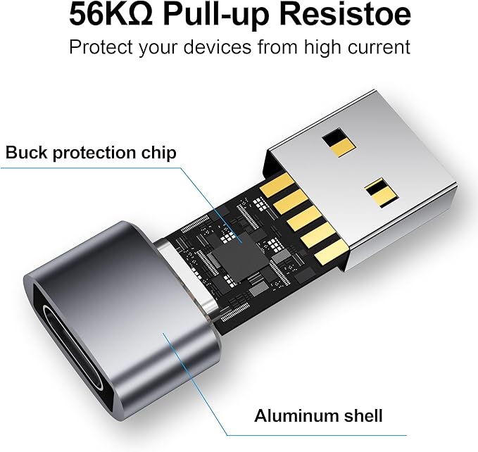 - Transfer Speed & Charging: This USB A to USB C adapter Offer USB 2.0 data transfer speed up to 480 Mbps and supports up enough power output 5V/3A for charging. The USB A to C adapter is made of premium aluminum alloy, designed for frequent plugging & unplugging and heat dissipation,every USB-C adapter has a built-in 56KΩ resistor ensure safety during charging.