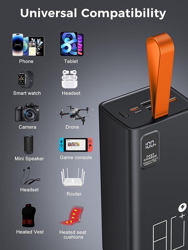 - Special Feature : Snowstorm/Typhoon Power Outage Backup✓, Compatible USB 5V Heated Vest/Scarve/Glove/Blanket etc.✓, Outdoor Artifact✓, 80000mAh High Capacity✓, Precise Digital Display✓, 5 Outputs & 2 Inputs✓, Fast Charging✓, Over Charging Protection✓, Short Circuit Protection✓, Auto Shut-Off✓, Universal Compatibility✓, 5 Outputs & 2 Inputs✓, Over Charging Protection✓, Short Circuit Protection✓, Auto Shut-Off✓, Universal Compatibility✓ Snowstorm/Typhoon Power Outage Backup✓, Compatible USB 5V Heated Vest/Scarve/Glove/Blanket etc.✓, Outdoor Artifact✓, 80000mAh High Capacity✓, Precise Digital Display✓, 5 Outputs & 2 Inputs✓, Fast C… See more
