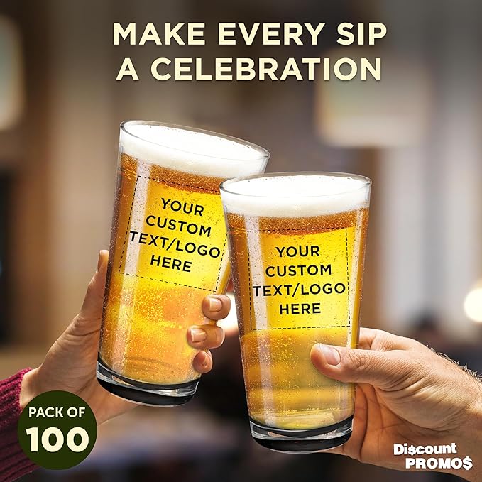 Custom Casale Pint Glass 16 oz. Set of 100, Personalized Bulk Pack - Beer Glasses, Heavy Duty Drinkware - Black