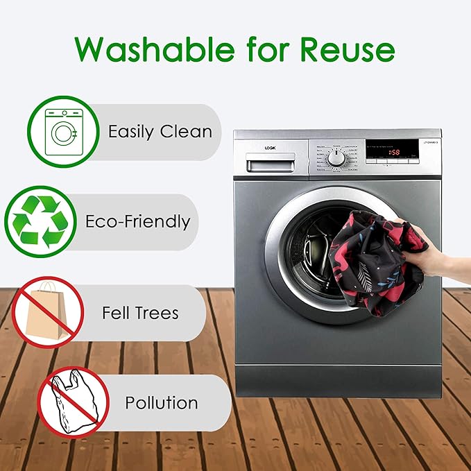 - 🥦 【MACHINE WASHABLE & REUSABLE】: Being washable is a must for any reusable shopping bags. All our reusable shopping bags are Machine Washable! Toss them right into the machine washer to save your time! You can help to reduce your impact on the environment by using reusable bags.