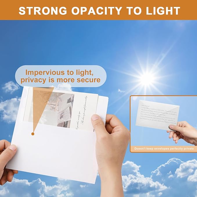 - ▶Professional Quality: Envelopes and cards are made with natural paper. These cards are made of heavyweight 300 GSM cardstock that feels thick and sturdy. Envelopes are 120 GSM weight, enough protect your information. Each has a pull strip adhesive self seal which works nicely, and does not require a glue stick