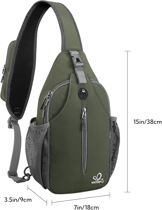 WATERFLY Crossbody Sling Backpack Sling Bag Travel Hiking Chest Bags Daypack (Dark Green)