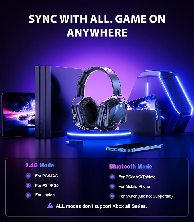 - 【Universal Gaming Headset Compatibility】Engineered for avid gamers, this premium wireless headset delivers seamless connectivity across PS5, PS4, PC, and Nintendo Switch. Enjoy limitless gaming on all your favorite devices with this versatile gaming headset.