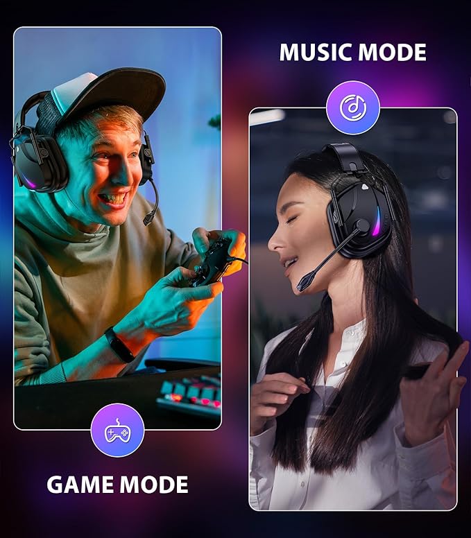 - 【Extended Comfort for Long Sessions】Designed with a lightweight build and breathable mesh ear cushions, these wireless headphones provide all-day comfort. The adjustable headband and ergonomic design help minimize fatigue, so you can stay focused and dominate longer.