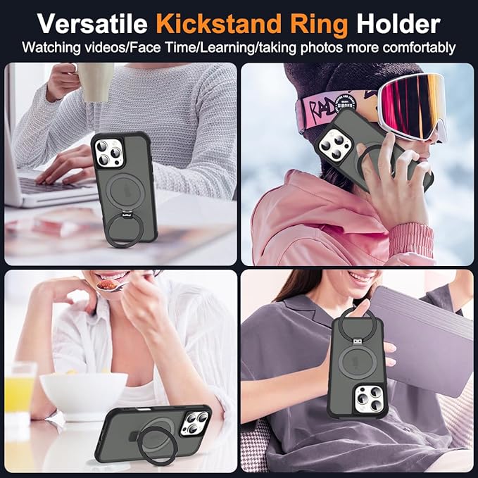 Compatible with iPhone 16 Pro Max Case with Invisible Magnetic O-Ring Stand Military-Grade Translucent Case for iPhone 16 ProMax 6.9" [Compatible with Mag-Safe][Great Grip Feeling], Black