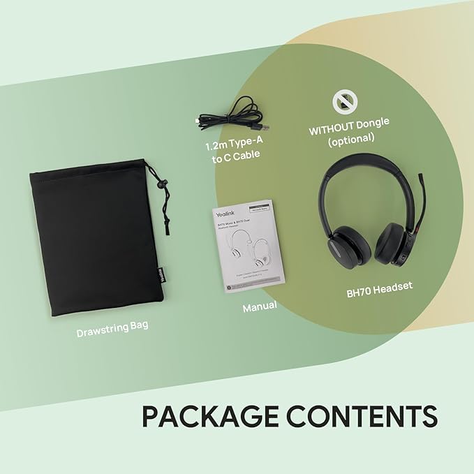 - UC Platform Compatible ✔ The newly released business bluetooth headset BH70 supports dual connection of smartphone and computer via Bluetooth 5.3. ℹ️ This WITHOUT DONGLE version does NOT support software call control as NOT include the BT51 dongle. Please choose the DONGLE bundle to achieve compatibility with mainstream UC platform and perform soft-end call control.