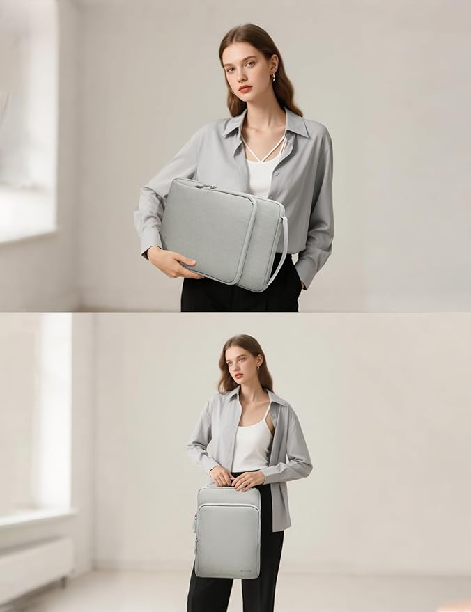 - Superior Multi-Protection: The outermost fabric is water-resistant and wear-resistant, the inner material is 8mm shockproof sponge and soft velvet, with an elasticated fixing strap to hold the laptop in place, perfectly protecting your laptop from spills/scratches/accidental drops. There is also a protective ridge around the perimeter to prevent your laptop from being scratched by zips