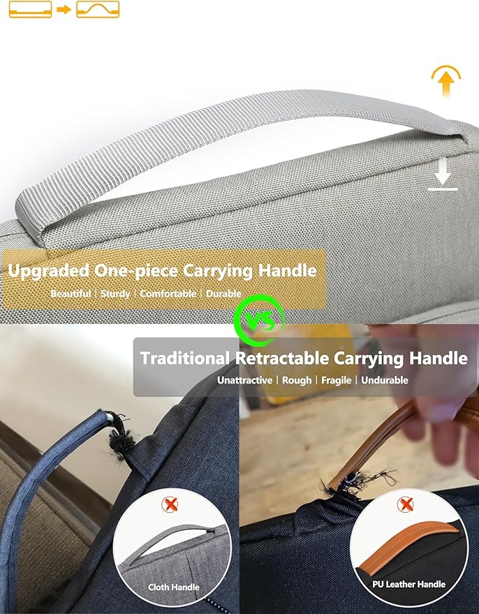 - Upgrade Carrying Handle: A one-piece moulded carry handle on the top side for easy carrying when you're on the go. The handle is made of fine nylon webbing with internal padding embedded for a comfortable hand grip. All seams are reinforced for durability