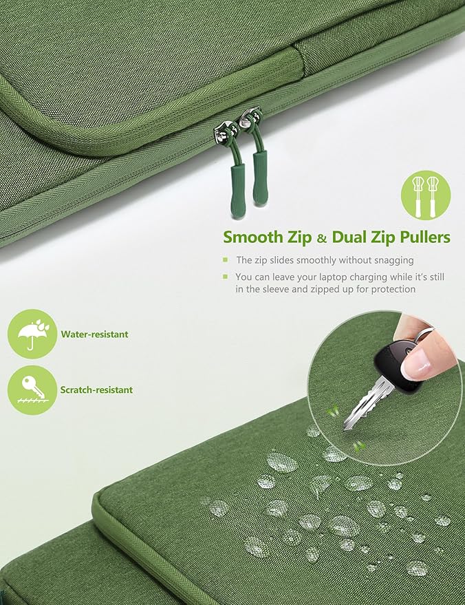 HYZUO 14-15 Inch Laptop Bag Sleeve for MacBook Air 15 M4 M3 M2, MacBook Pro 15, XPS 14/15 Plus, 15" Surface Laptop, Notebook Case for 14" Dell HP Lenovo ThinkPad Asus Acer Huawei, Grass Green