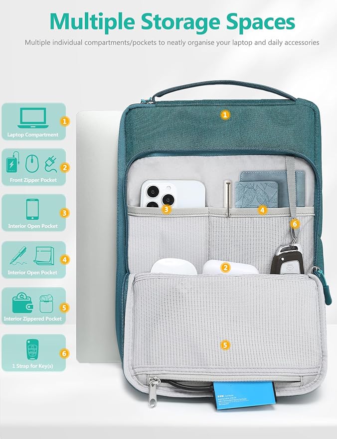 - Superior Multi-Protection: The outermost fabric is water-resistant and wear-resistant, the inner material is 8mm shockproof sponge and soft velvet, with an elasticated fixing strap to hold the laptop in place, perfectly protecting your laptop from spills/scratches/accidental drops. There is also a protective ridge around the perimeter to prevent your laptop from being scratched by zips