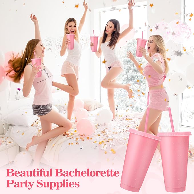 Honeydak 60 Pack Tumbler with Straw and Lid Bulk Glitter Plastic Cups Water Bottle Iced Coffee Travel Mug Reusable Party Favor Cups for Birthdays travel 24-27 oz (Light Pink)