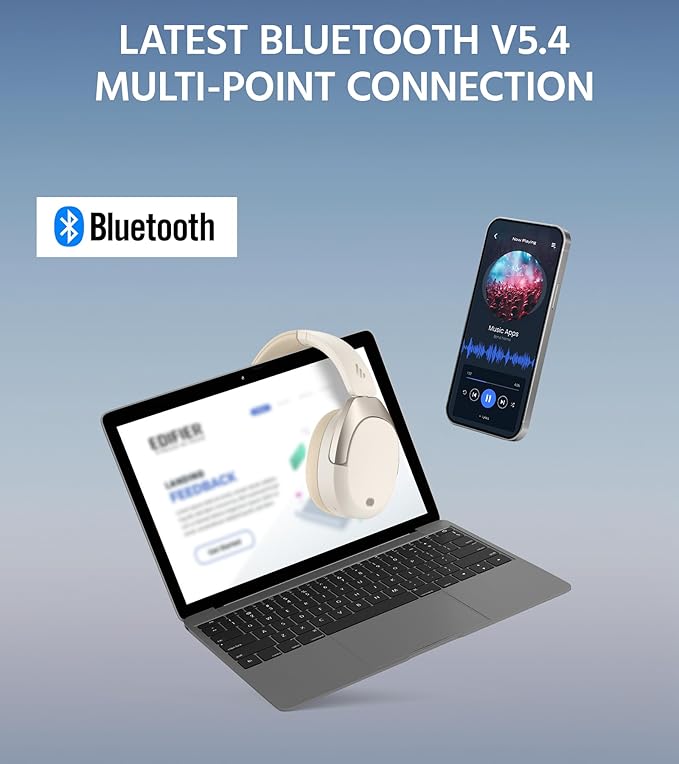 Edifier W830NB Wireless Over Ear Headphones with -45dB Active Noise Cancelling, 94H Playtime, LDAC Hi-Res Sound, Spatial Audio, Fast Charging, Multipoint Connection, Bluetooth V5.4 - Ivory
