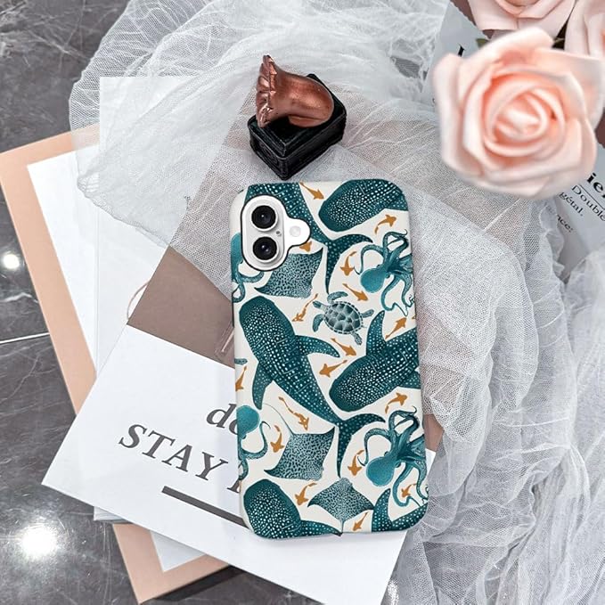 DAIZAG Case Compatible with for iPhone 16,Octopus Turtle Manta Ray Whale Phone Case for iPhone 16 for Girl Women Boy Men