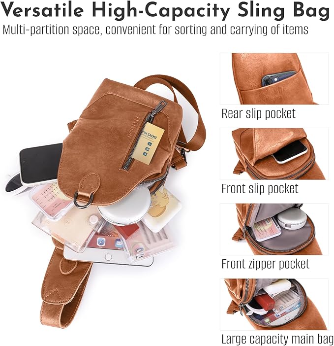 - Large Capacity and Multifunctional* Despite its compact size, this sling bag for women offers a large capacity and multifunctional design, allowing you to carry all your essentials with ease and style