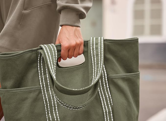 - Classic Canvas: Made of 100% cotton fabric, durable and anti-abrasion, ensuring long-term use; Contrast-seamed shoulder straps distinguish it from ordinary canvas bags and add a touch of bright color
