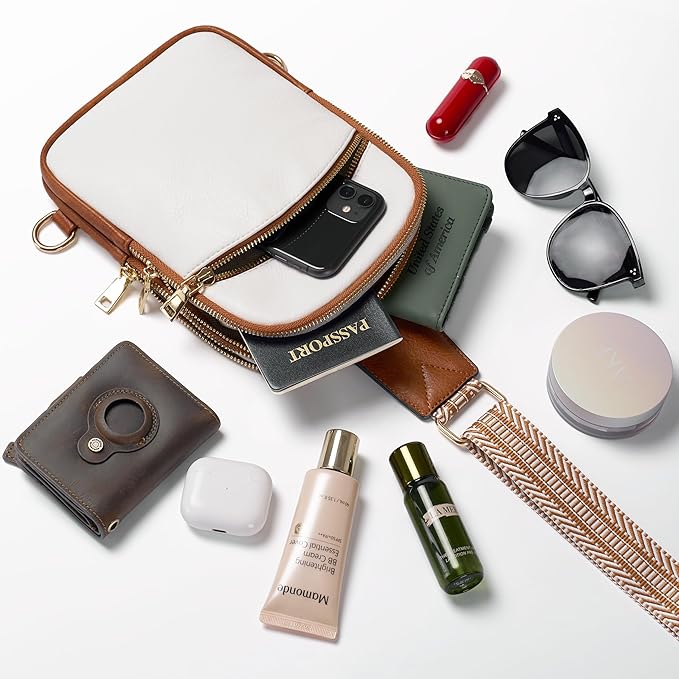 - Multiple Compartments: Includes 2 main zippered pockets, featuring 3 RFID card slots, 1 slot pocket, 1 interior zippered pocket, and 1 open pocket. Additionally, it has an anti-theft back zippered pocket and a front zippered pocket. The main zipper pocket is designed with a wide opening for easy access to your belongings. The storage is excellent—you can fit your phone, glasses, credit cards, cash, and lipstick, all while easily finding what you need in the separate compartments.