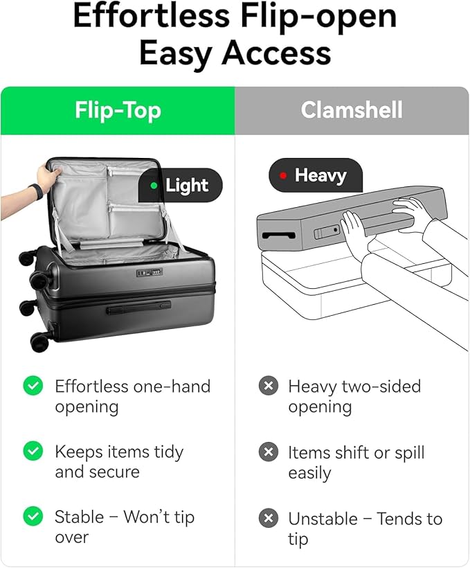 - Front Opening Design: Our large checked luggage features a front opening, saving space and making access to your belongings a breeze. Effortlessly open and close your suitcase like never before.