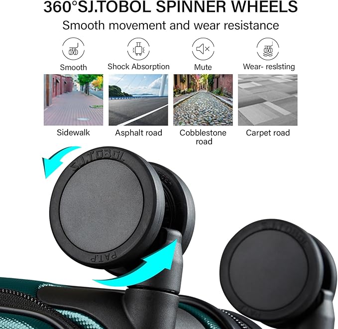 - 【Spinner Wheels & TSA Code Lock】TSA approved carry on luggage with wheels combination lock more secure and easy to set to keep your suitcase privacy, ensure that you will have safer and more reliable when traveling. 360°suitcase with wheels made from SJ. TOBOL universal with wear-resistant that rolls extremely easily to make it carry through the airport smoothly