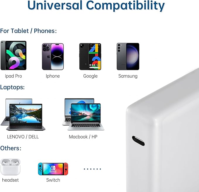 - Compatible with laptops tablets and smartphones with USB-C connector: These 87W USB C power adapters also suits for other Type-C phones.